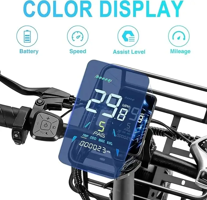 Electric Bike for Adults with Rear Seat and Front Basket, 1000W 48V 15Ah – LCD Color Screen – F/R Disc Brake – Front Fork Shock Absorption – 20″x4.0″Fat Tire All Terrain Commuting E-Bike – 2 Seats